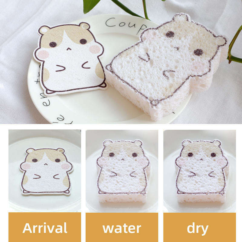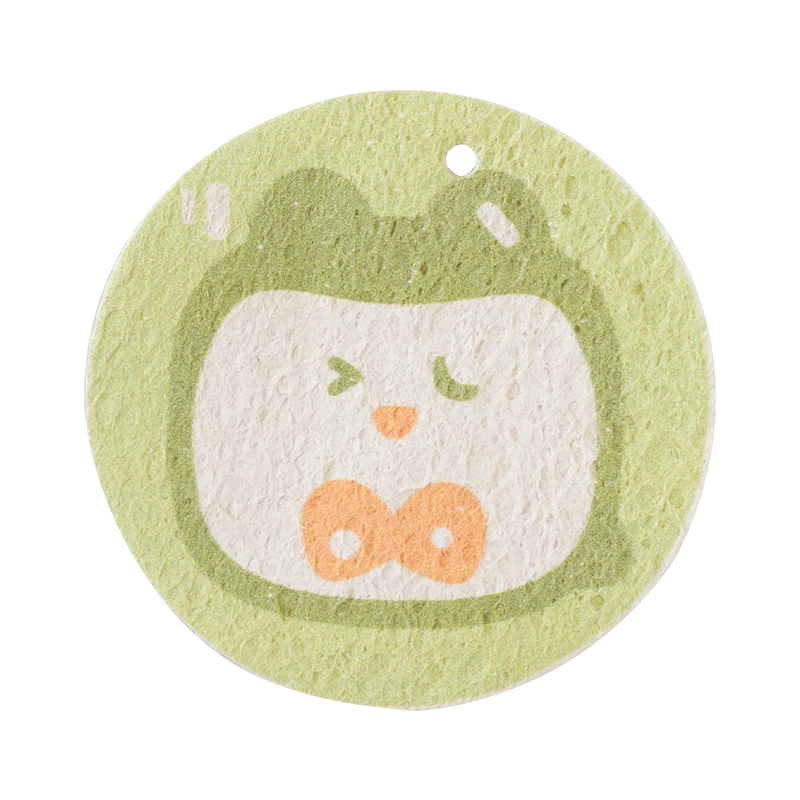Позвольте мне показать вам другую форму древесной губки — губку из прессованной целлюлозы. Он производится из древесной целлюлозы после горячего прессования при высокой температуре. Губка из сжатой целлюлозы не только сохраняет все преимущества хлопковой губки из древесной массы. После прессования мы уменьшаем объем губки, чтобы снизить стоимость доставки, мы также можем печатать логотипы или другие рисунки на поверхности. Это делает уборку веселее.